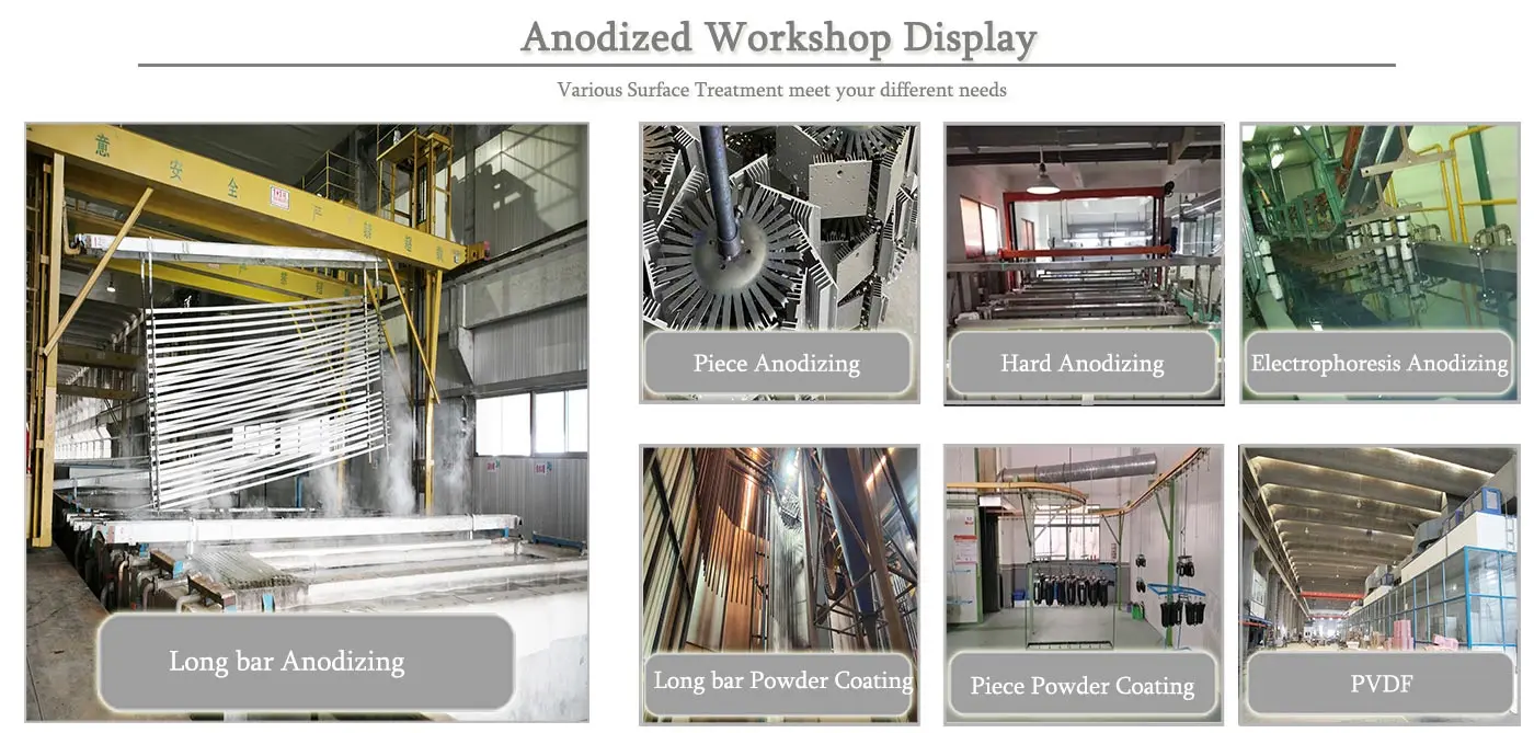 | Finish | Anodizing, Mill finish, Electroplating, Polishing, Sandblasted, Powder coating, Silver plating, Brushed, Painted, PVDF, etc. | |